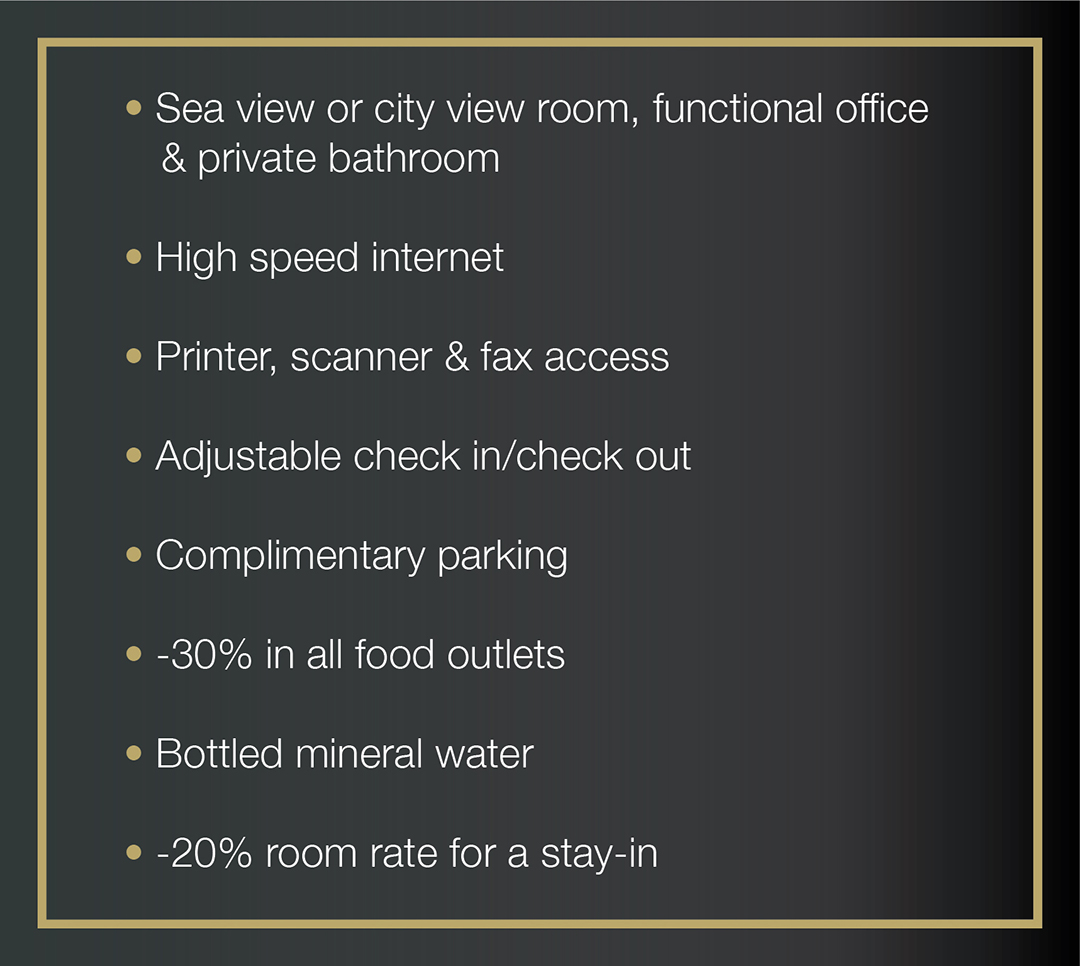 Giving you the opportunity to use all the services of the hotel during your stay, for a productive and creative day.