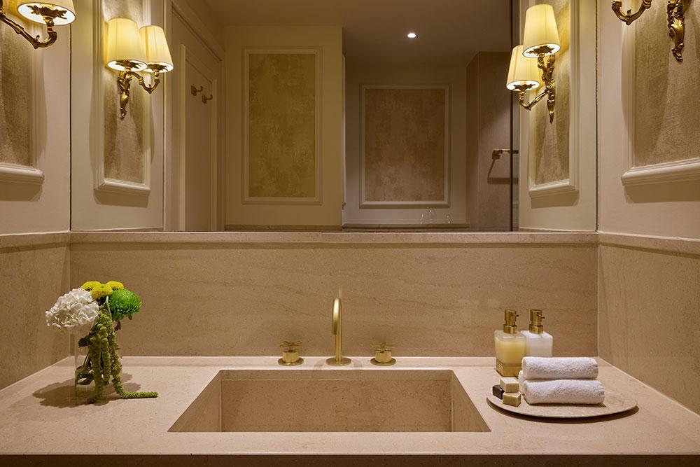 Το μπάνιο είναι ένας χώρος απόλυτης χαλάρωσης, σχεδιασμένος για απόλαυση και ηρεμία. Κάθε στοιχείο του δωματίου, καθώς και η γενική αίσθηση του χώρου, αποπνέουν φροντίδα και κομψότητα.